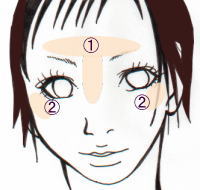 (おでこが出ている方は鼻筋のみにしましょう)