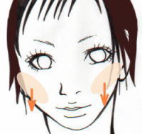 シャドウの入れる位置は、ほほの一番高いところから下の部分です。