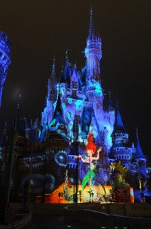 幸運なことに、シンデレラ城で行われるプロジェクションマッピング、「ワンス・アポン・ア・タイム」の抽選に大当たり!!最前列でショーを見ることができました!(^▽^)!