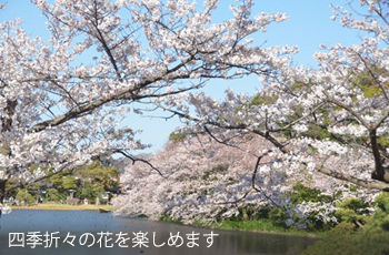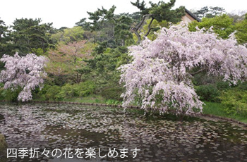 花々も多く四季折々で美しい風景を愛でることができます。梅や桜、、藤の名所としても人気のスポット。庭園内には原三渓の美術館もあります。建物のいくつかは入室することも可能で、足休めをしたいときに畳の上でくつろぐこともできます。甘味処やお食事処もあり、美味しい和菓子や名物の三溪そばが味わえます。